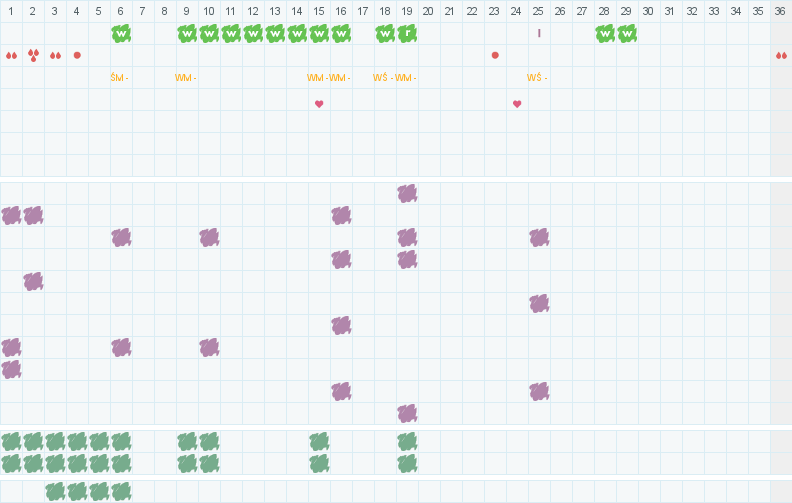 | 22wt | 23śr | 24cz | 25pt | 26so | 27nd | 28pn | 29wt | 30śr | 31cz | 01pt | 02so | 03nd | 04pn | 05wt | 06śr | 07cz | 08pt | 09so | 10nd | 11pn | 12wt | 13śr | 14cz | 15pt | 16so | 17nd | 18pn | 19wt | 20śr | 21cz | 22pt | 23so | 24nd | 25pn | 26wt |