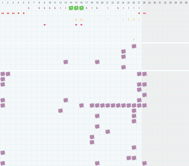| 22pt | 23so | 24nd | 25pn | 26wt | 27śr | 28cz | 29pt | 30so | 01nd | 02pn | 03wt | 04śr | 05cz | 06pt | 07so | 08nd | 09pn | 10wt | 11śr | 12cz | 13pt | 14so | 15nd | 16pn | 17wt | 18śr | 19cz | 20pt | 21so | 22nd | 23pn | 24wt | 25śr | 26cz | 27pt |
